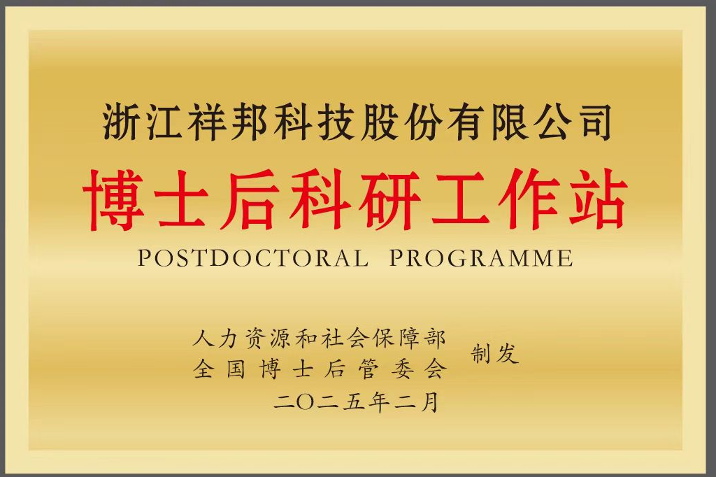 2025年2月經國家人社部、全國博士后管理委員會聯(lián)合批準,祥邦科技正式設立國家級博士后科研工作站。這一里程碑距2023年3月建成浙…